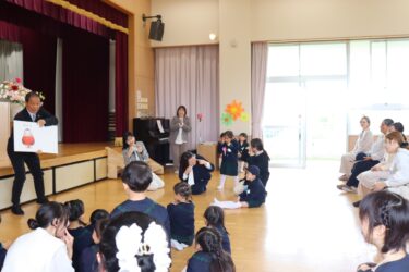 風もなく、春の穏やかな日、第45回入園式が行われました。ちょっと大きめの真新しい制服を着た新入園児たちが笑顔一杯で、お家の人と手を繋いでやってきました。今日から待ちに待ったワクワク、ドキドキの幼稚園生活がスタートしました。