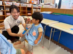 1年前にみやこ乳児園へ来てくれ、あの時は登園時に寂しさや不安から泣けてしまっていたけれど、今は毎朝、手を振りながら「おはよ!」「バスみた!」と色々な発見まで教えてくれるようになりましね!お話が上手になり、先生たちはいつもどんなことを話してくれるのかな〜って楽しみにしています!これからもたくさんお話しして、たくさん体を動かして、たくさん挑戦と発見をする1年にしようね!