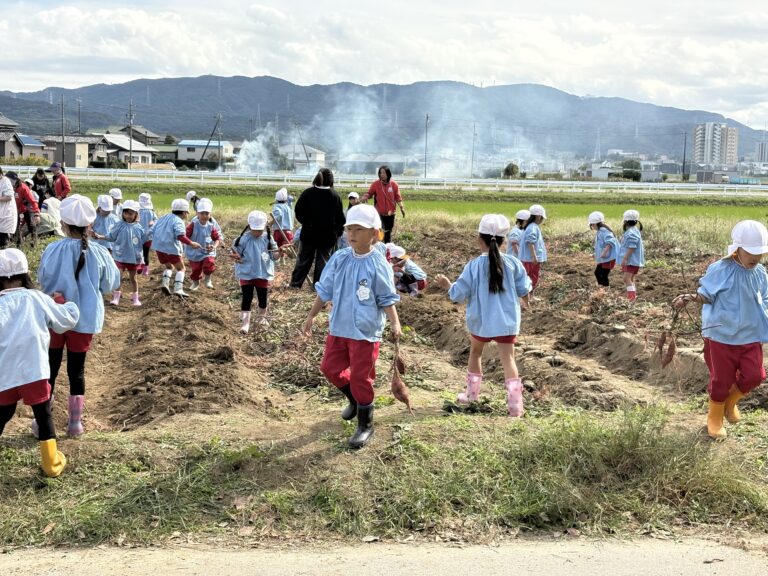 29日(水)にみんなでサツマイモ掘りに行きました。試し掘りをしたときはほとんどできていなく、焼き芋パーティーができないと心配しました。でも、みんなで掘ってみると例年の半分ぐらいの出来でしたが、なんとかサツマイモ掘りができました。