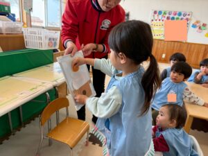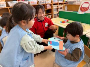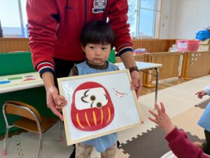 鏡餅を組み立てたり、だるま、ひょっとこの顔を作ったりしました。