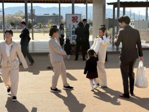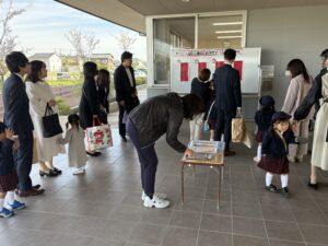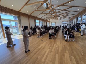 今日は令和8年度の入園式。お家の人と手を繋ぎ、笑顔一杯で登園してきました。